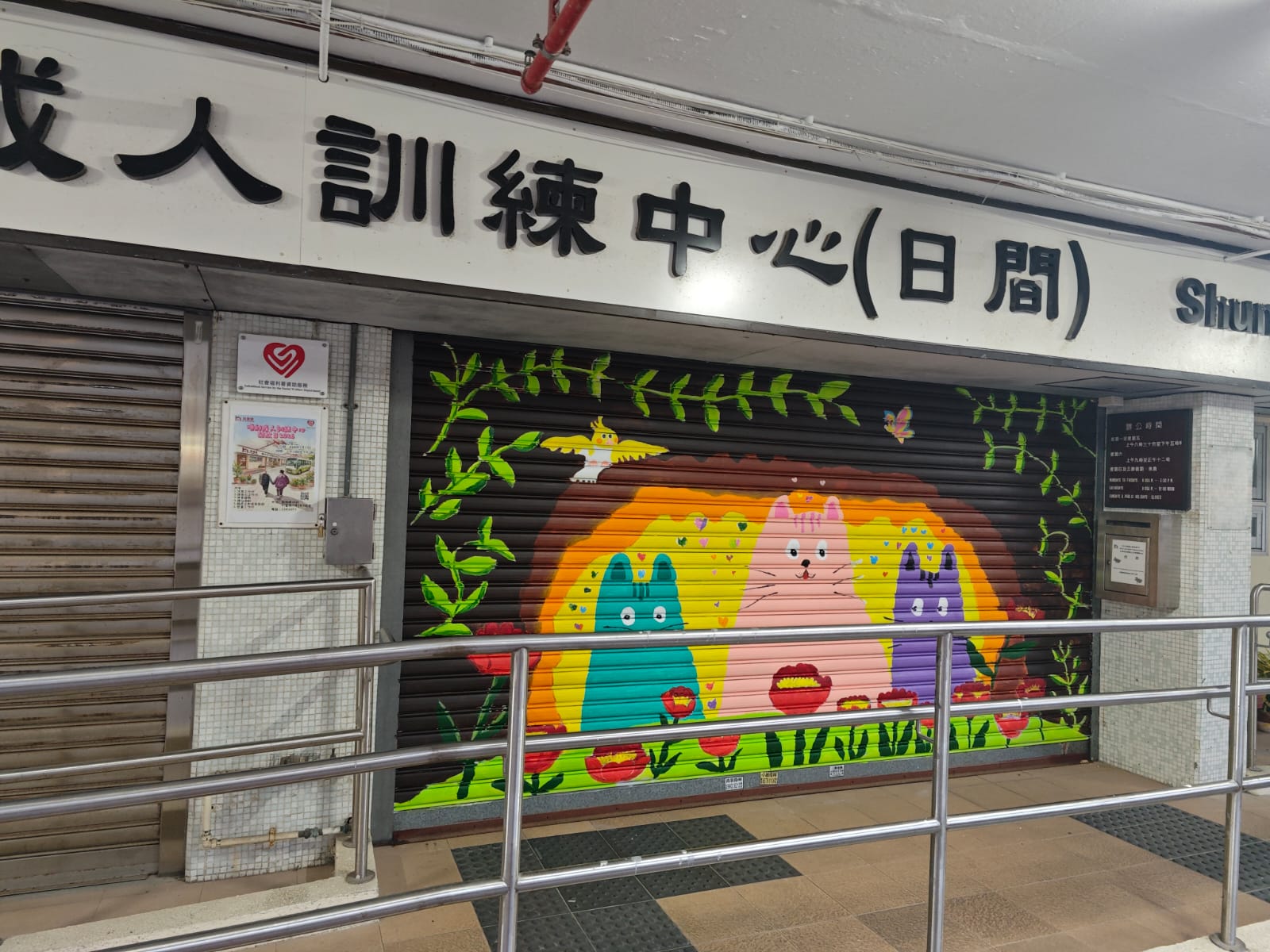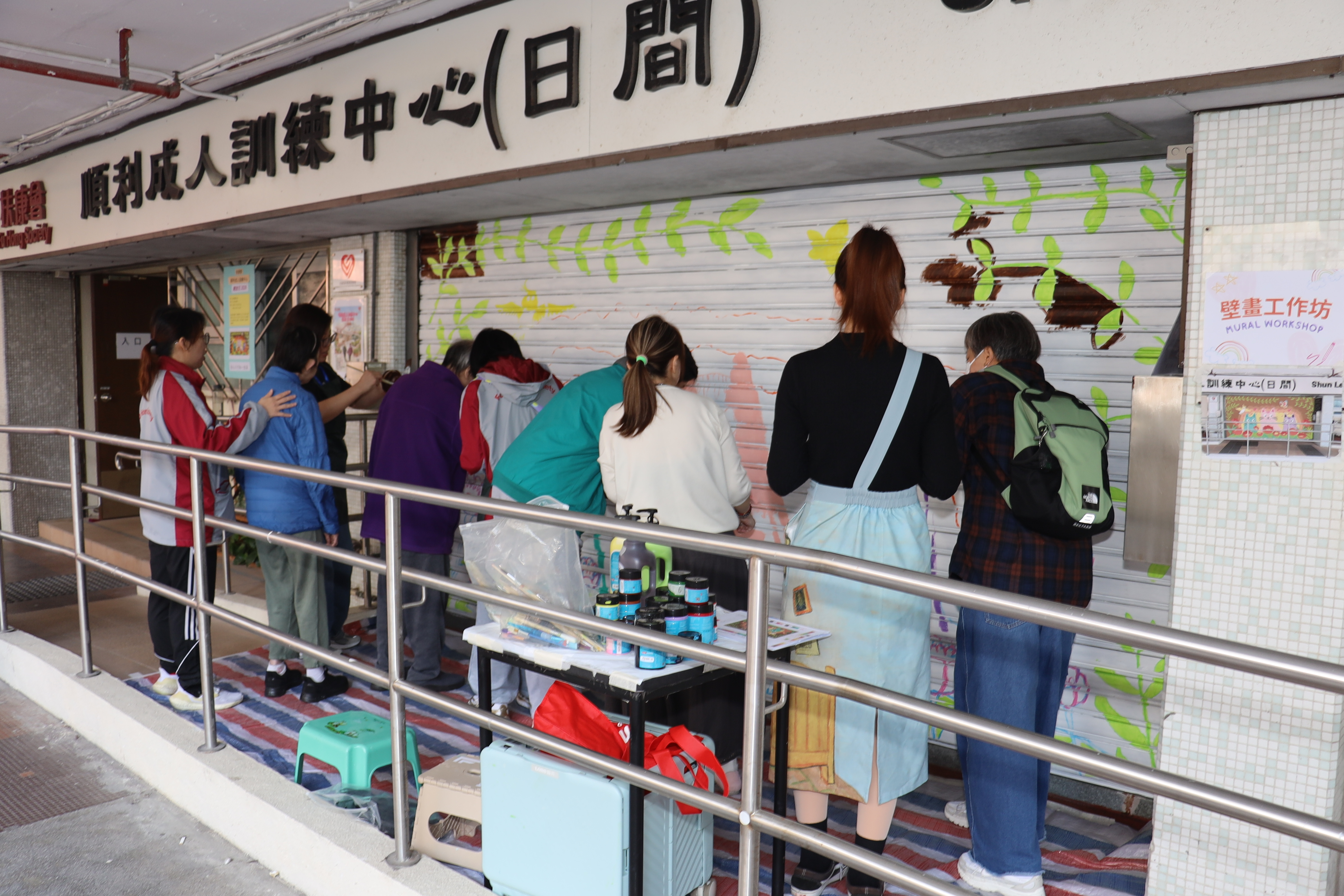 順利的日間中心於非訓練時段都會關門落閘,現在不再是冷冰冰的鐵閘,而是一幅五顏六色的藝術壁畫,路人還會為此打卡留念呢!